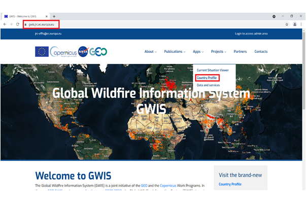 The Global Wildfire Information System (GWIS) is a joint initiative of the Group on Earth Observations (GEO) and Copernicus Work Programs. GWIS aims to bring together existing information sources at the regional and national levels in order to provide a comprehensive evaluation of fire regimes and fire effects at a global scale, and support operational wildfire management from national to global levels. In 2021, GWIS launched its Country Profiles application which provides national-level statistics and historical data of fires, including yearly burned area by landcover class statistics generated from MODIS and ESA land cover products.