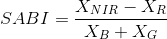 El algoritmo SABI (Superficial Algae Bloom Index) detecta la biomasa que flota en la superficie del agua, que tiene una respuesta similar a la vegetación terrestre (Alawadi 2010). Es una relación de diferencia de banda empírica similar al NDVI, pero incluye específicamente bandas espectrales sensibles al océano; la azul (característica del agua clara) y la verde (característica de la floración de la columna de agua). Para Modis, las bandas corresponden a: B1 (XR = 645 nm) y B2 (XNIR = 869 nm), ambas agregadas del grupo de bandas MODIS de resolución de 250 m; y las bandas B3 (XB = 469 nm) y B4 (XG = 555 nm), respectivamente, disponibles dentro del grupo de bandas MODIS de resolución de 500 m (Alawadi 2010).