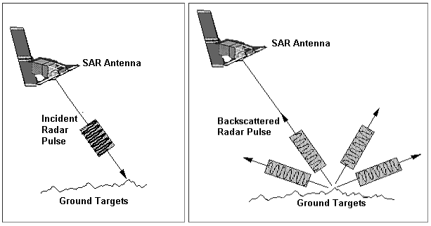 La detección y el alcance de la radio (radar) se refieren a una técnica y un instrumento. El radar como instrumento de detección remota activa emite un pulso de radiación electromagnética a la superficie de la Tierra y mide la señal retrodispersada. Un objeto dispersa una onda incidente en todas las direcciones posibles con fuerza variable y con un patrón de dispersión diferente dependiendo de la dirección del incidente y la retrodispersión es la porción de la energía dispersada que se dirige al receptor del radar. La amplitud y fase de la señal retrodispersada que se mide depende de las propiedades físicas y eléctricas del objetivo. El rango (la distancia del objetivo y el radar) y la intensidad de retrodispersión de los objetos detectados pueden determinarse mediante la técnica de radar que utiliza el tiempo de viaje redondo (viaje al objeto y de regreso al receptor) del pulso emitido.