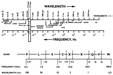 Caption: La gama de bandas de radiación electromagnética y frecuencia de radar. Imagen: ESA.