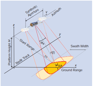 Geometría de imágenes SAR. Imagen: Moreira et al., 2013.