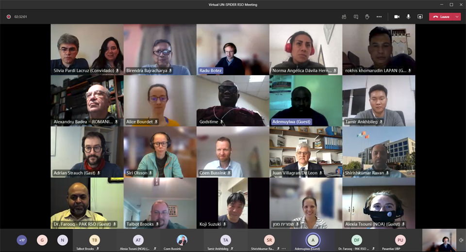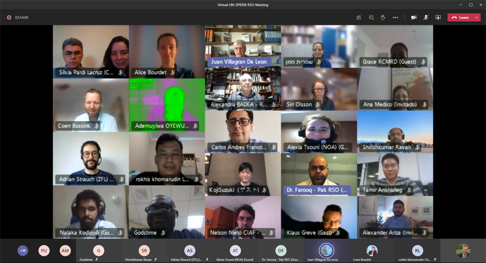 The virtual meeting was held on two days with meetings of two hours each. The meeting served to exchange on the status of recent activities of RSOs, their contributions to UNSPIDER in recent years, initiatives started in 2020, possible contribution from RSOs and discuss new proposals/projects and ways to cooperate.