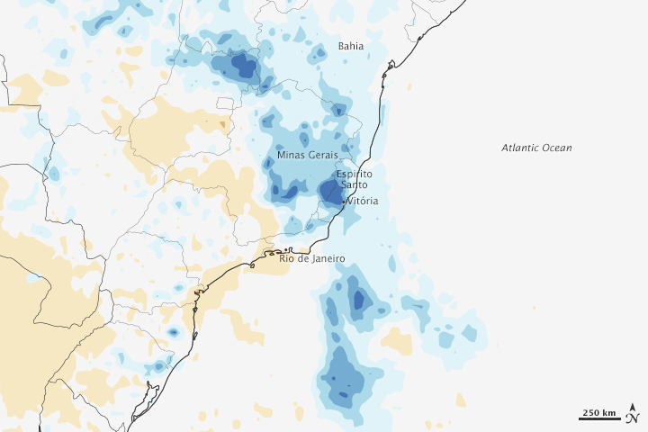 The rainfall in December is extreme but the pattern is similar to other observations made by TRMM in Brazil during the Southern Hemisphere summer. The data collected by the satellite corresponds with ground-based measurements from the region.