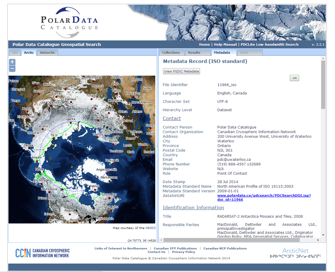 “The Polar Data Catalogue’s mandate is to make such information freely available to scientists, students and the public to enhance our understanding and stewardship of the polar regions. We are proud to work with the Canadian Space Agency and MDA to bring this outstanding Canadian technology and science to the international community.” said Professor LeDrew.