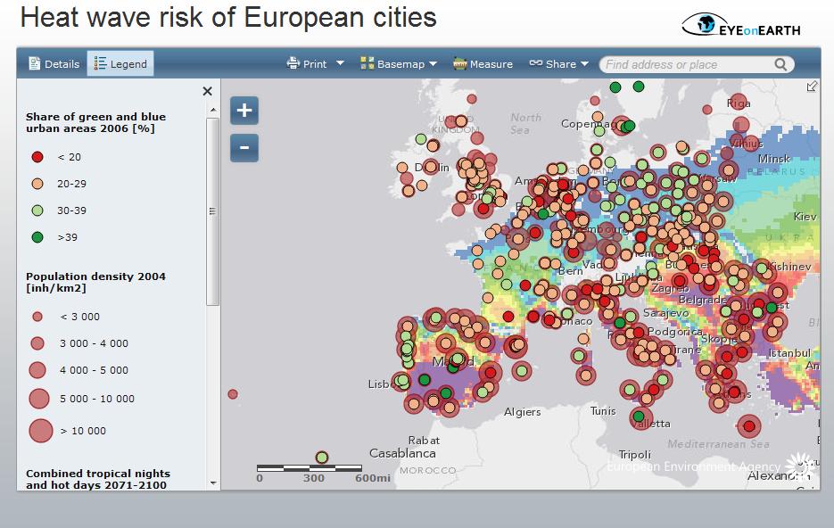 The European Environment Agency (EEA) unveiled on 4 September 2012 an interactive map that shows the heatwave risk for European cities; this and other maps are included in a recently published EEA report entitled “Urban adaptation to climate change in Europe”.