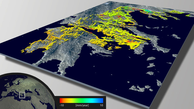 During its trial period, the WAP has mapped half of Greece's mainland and saw up to 200 scatterers per sq km in rural areas like Athens. By mapping terrain deformation over the last ten years, the maps showed that some areas are sinking by about 10 mm per year.