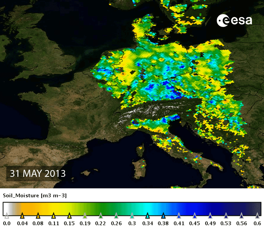ESA’s SMOS mission scientist, Matthias Drusch, explains, “Data from SMOS can be used to monitor the saturation of the soil. “At the end of May we see that the soil was almost fully saturated, with record values for moisture. More rain meant that it immediately ran off as the surplus water could not soak into the soil, and this resulted in these terrible floods.