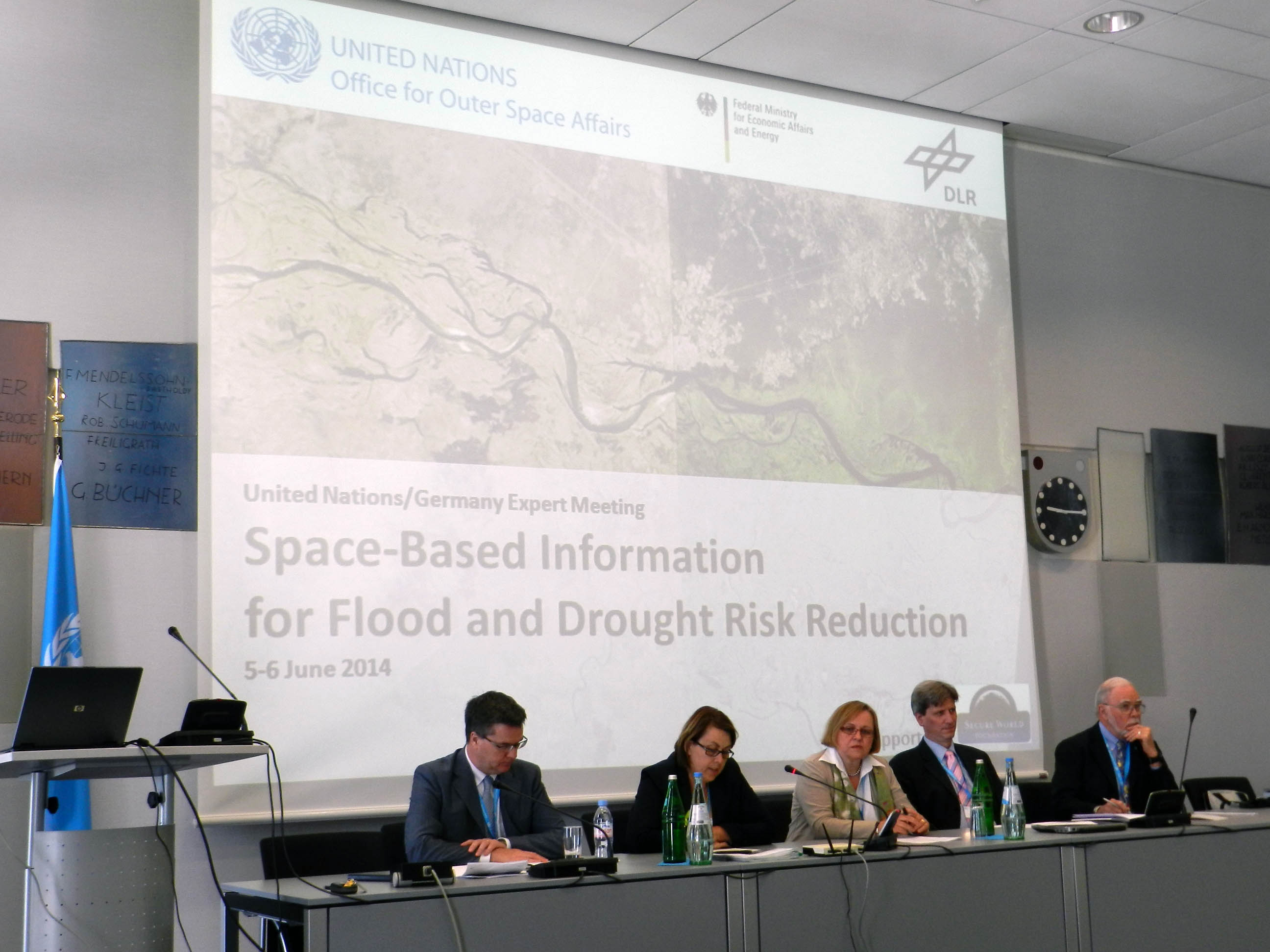 UNOOSA/UN-SPIDER and its partners, the German Aerospace Center, the German Ministry of Economics and Energy and Secure World Foundation, successfully held the "United Nations/Germany Expert Meeting on Flood and Drought Risk Reduction" in Bonn, Germany from 5 to 6 June 2014. The event brought together more than 60 international experts from Asia, Africa, America and Europe, who are involved in disaster risk management, remote sensing, and hydrology and drought management. The meeting concluded with the presentation of a set of recommendations regarding how best to promote the use of space-based applications as a way to reduce the impacts and effects of floods and droughts worldwide.