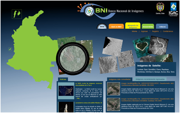 In February 2013, the Agustín Codazzi Geographic Institute in Colombia, host of a UN-SPIDER Regional Support Office, launched a new web site allowing access to the National Bank of Images of Colombia (BNI): http://www.bni.gov.co/portal/public/classic/