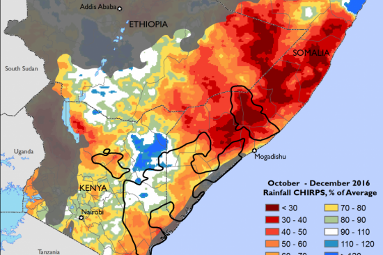 According to the National Drought Management Authority (NDMA) the drought has been worsening in most Kenyan counties, now affecting nearly half the country. Forage conditions are drier than usual because of lower than usual rainfall conditions and also the extended dry period between the short and long rains in 2016. The number of people in need of food has risen from 1.3 million to 2.7 million last year.