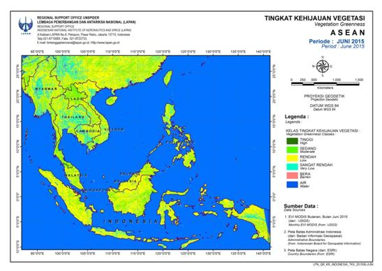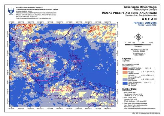 ENSO events are bringing an impact on the occurrence of drought in some of Southeast Asia regions. Indonesia National Institute of Aeronautics and Space (LAPAN), as Regional Support Office of UN-SPIDER in Southeast Asia, has been monitoring the drought condition over the regions since June 2015.