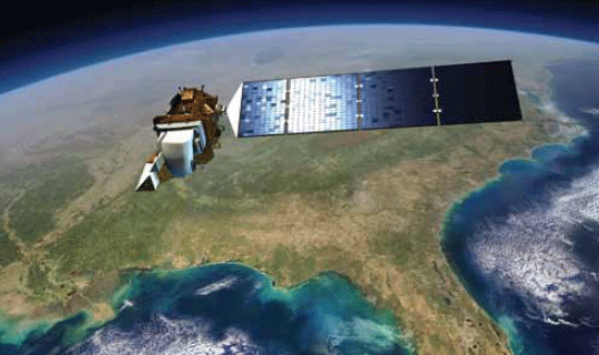 The scientists use coarse-resolution data from geostationary satellites to screen for drought stress and then take a closer look at stressed areas with high-resolution data from other satellites. Geostationary satellites appear motionless because they orbit at 22,000 miles above Earth’s equator. These satellites take snapshots of landsurface temperature conditions every five to 15 minutes.