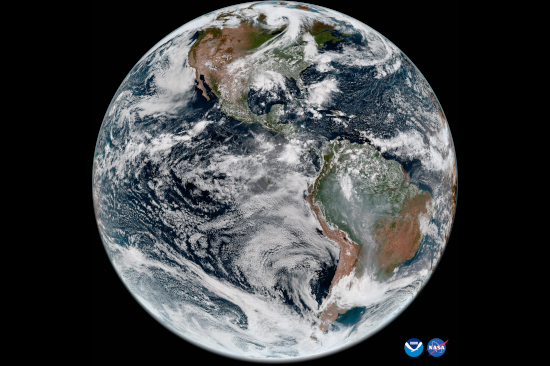 Martin article image: GOES-19 full disk GeoColor image from Aug. 30, 2024. This type of imagery combines data from multiple ABI channels to approximate what the human eye would see from space.