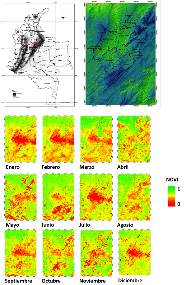 The Colombian Agustin Codazzi Geographic Institute - IGAC and their Center of Research and Development of Geographic Information – CIAF, recently did a series of projects based on risk management. One of those was focused on indentifying zones in the process of decertification using optical remote sensing in the Andean dry region of Villa de Leyva (Boyacá), Colombia. For this, the experts analyzed the values of the NDVI (Normalized Difference Vegetation Index) from 60 rasters per month (from January 2006 to December 2010) obtained from a MODIS sensor (Moderate Resolution Imaging Spectroradiometer). Based on the results of this analysis, zones in process of desertification were identified through linear and nonlinear regressions between the years 2000 and 2010 based on the values of the index in a certain season of the year. Finally, the IGAC experts estimated change between 2000 and 2010 for three categories that are usually employed to calculate the spatial change in desertification: desertified areas, areas with high risk of desertification and areas with low risk of desertification.