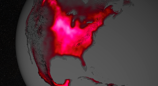 Satellite sensor data show that the crops in the Midwest region of the United States have highest photosynthetic activity, compared to other agricultural regions. Sensors are detecting the fluorescence glow of the chlorophyll released by the crops during the photosynthesis.