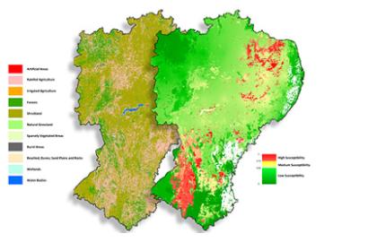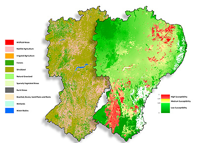 Across the ocean in the northeast region of Brazil, increased agricultural activities combined with severe droughts has reduced the quality of vegetation in some areas.
