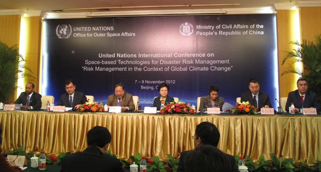 The United Nations International Conference on Space-based Technologies for Disaster Management - "Risk Assessment in the Context of Global Climate Change" was successfully inaugurated on 7 November 2012 in Beijing, China. This Conference taking place from 7 to 9 November 2012 is co-organized by UNOOSA and the Ministry of Civil Affairs of the People’s Republic of China (PRC), in collaboration with the Ministry of Foreign Affairs of PRC (MoCA), the National Space Administration (CNSA) of PRC, the Asia Pacific Space Cooperation Organization (APSCO) and with the support of Digital Globe. This is the second such conference organized in Beijing following the successful conference in 2011. The opening ceremony of the conference was hosted by Her Excellency Ms. Jiang Li, Vice Minister of MoCA, PRC; Ms. Mazlan Othman, Director of UNOOSA; Mr. Li Deren, Academician from Wuhan University in China and the representatives from the Ministry of Foreign Affairs, CNSA and APSCO. The opening ceremony was chaired by Mr. Shirish Ravan, the Head of UN-SPIDER Beijing Office. Prior to the opening ceremony, Vice Minister Ms. Jiang Li and Ms. Mazlan Othman met to exchange ideas related to the support provided by the Chinese Government to the UN-SPIDER Beijing Office. The issues discussed included the long-term strategy and work plan of the UN-SPIDER Beijing Office. Both parties expressed their positive attitude on continuing close cooperation towards the development of the UN-SPIDER Beijing Office. All Conference presentations are available on the Knowledge Portal. [1] [1] http://www.un-spider.org/risk-assessment-climate-change
