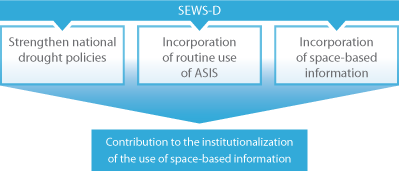 Considering the fact that traditional DEWS in these regions rely on rainfall data anomalies and on the observations gathered at specific places by the employees of ministries of agriculture and local authorities; the SEWS-D project aims to strengthen such early warning systems through the strengthening of national drought policies and the incorporation of the routine use of the information generated through the use of the Agricultural Stress Index System (ASIS) which has been developed by the Food and Agriculture Organization of the United Nations (FAO), information by the International Centre for the Research of El Niño Phenomenon (CIIFEN in its Spanish acronym), and the use of additional space-based information. In particular through the incorporation of the use of indexes based on satellite products such as the Normalized Differential Vegetation Index (NDVI), the Enhanced Vegetation Index (EVI), the Vegetation Condition Index (VCI), the Vegetation Health Index (VHI) and the Vegetation Anomaly Index (VAI); as well as soil-moisture. The reasons that justify the use of such indexes include:
