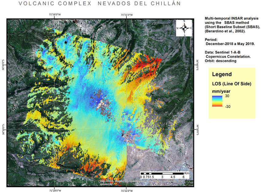 Figure. 1.Results of the SBAS Multi-temporal analysis applied to the Nevados de Chillan volcano in Chile.